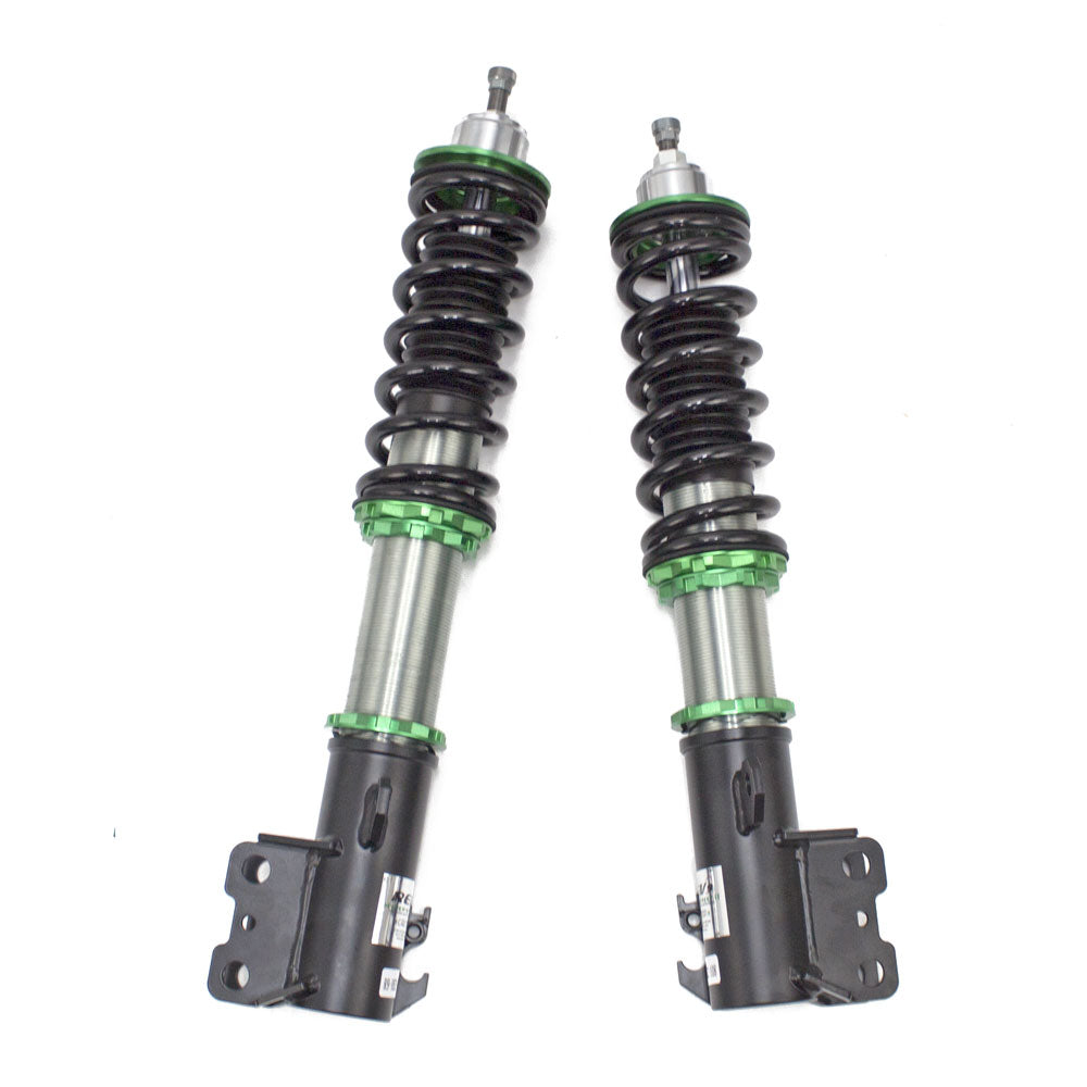 Hyper-Street II Coilover Suspension Upgrade Compatible With Toyota Yaris (E130/E150) 2013 2014 2015 2016 2017 2018. Hyper-Street II coilover suspension upgrade features mono-tube shocks with 32 clicks rebound settings and full length adjustable. Mono-tube shocks provides larger capacity for gas and oil to improve comfortable level of typical lowering vehicle. Special 32 clicks of valving allows user to fine tune rebound force settings. Independent spring tension and full length adjustable allows drop without sacrifice comfort by shorten pitch distance.