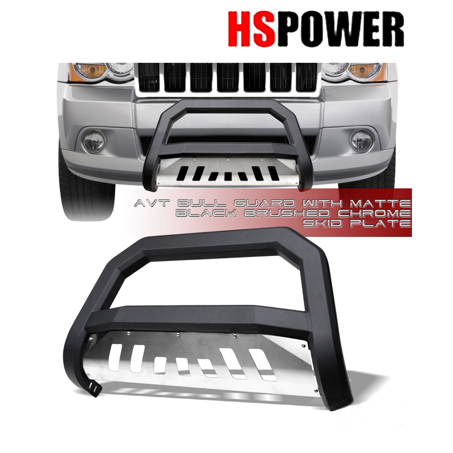 AVT Edge Bull Bar Bumper Guard Matte Black with Ss Skid Plate For 2008-2010 Grand Cherokee