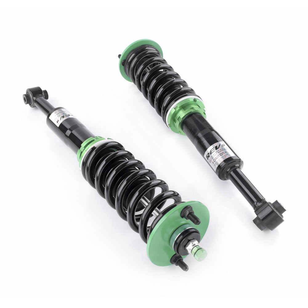 Rev9 Hyper-Street ONE Coilovers for Acura CL (YA4) 2001-03 are designed for tuners on a budget. Engineered to lower your vehicle with the combination of proper lengthen shocks and High tensile springs to work together to provide perfect balance between comfort and performance. Hyper-Street ONE Coilovers Lowering Kit Assembly. Rebuild-able Mono-Tube shocks with 16 damping force adjustment to help quickly stabilize and keep the wheels on the road when you hit a bump. High tensile springs are made from SAE9254 steel wire to assure high quality standards and longevity to withstand performance needs. Pillow-Ball top mounts provide sharper and precise handling are utilized if applicable. With all these key features to make Rev9 Hyper-Street ONE are one of the best budget kits on the market today.