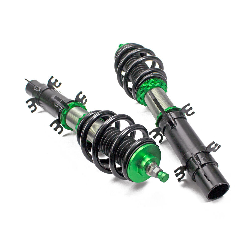 Hyper-Street II Coilover Suspension Upgrade Compatible With Audi A3 (8L) 1998 1999 2000 2001 2002 2003. Hyper-Street II coilover suspension upgrade features mono-tube shocks with 32 clicks rebound settings and full length adjustable. Mono-tube shocks provides larger capacity for gas and oil to improve comfortable level of typical lowering vehicle. Special 32 clicks of valving allows user to fine tune rebound force settings. Independent spring tension and full length adjustable allows drop without sacrifice comfort by shorten pitch distance.