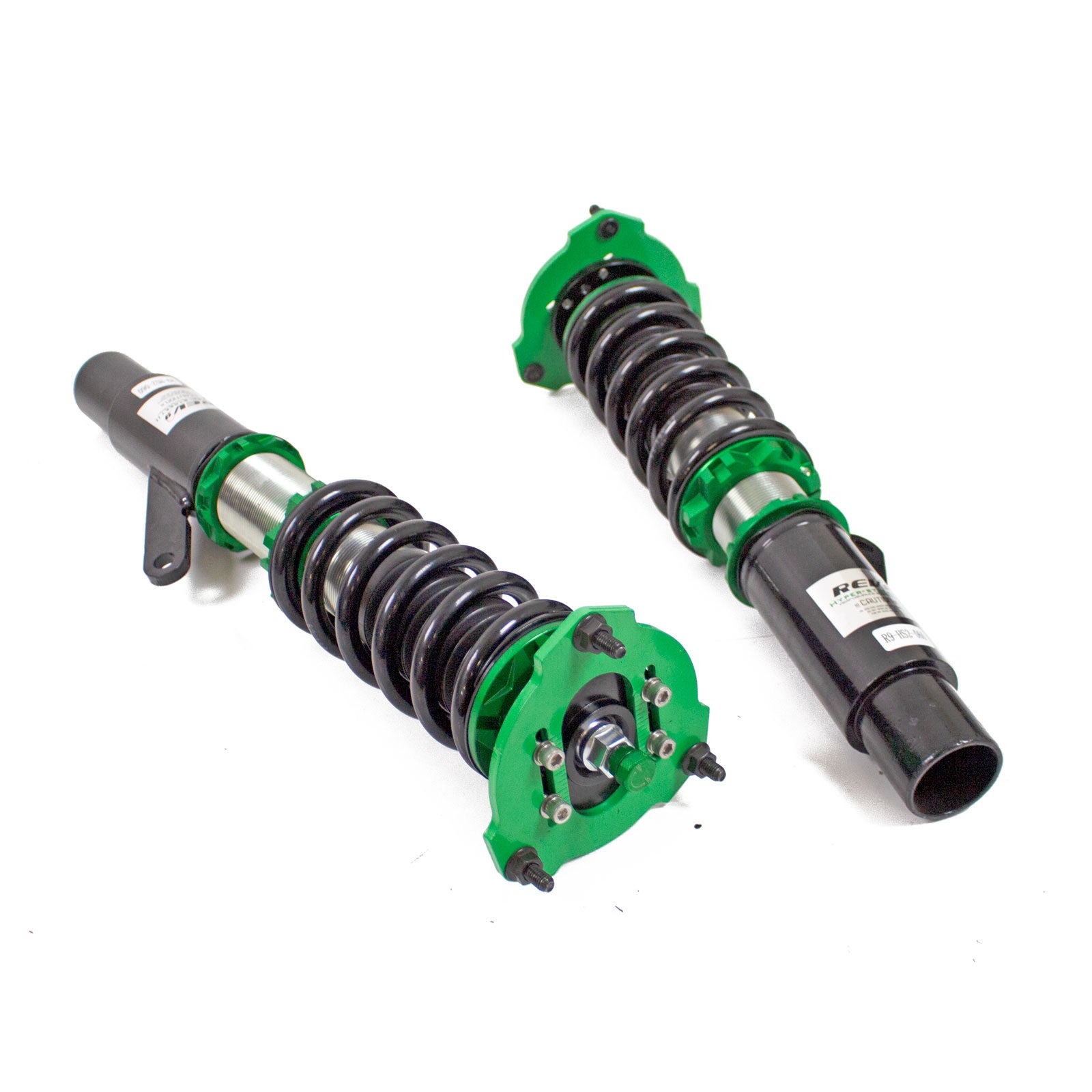 Hyper-Street II coilover suspension upgrade features mono-tube shocks with 32 clicks rebound settings and full length adjustable. Mono-tube shocks provides larger capacity for gas and oil to improve comfortable level of typical lowering vehicle. Special 32 clicks of valving allows user to fine tune rebound force settings. Independent spring tension and full length adjustable allows drop without sacrifice comfort by shorten pitch distance.