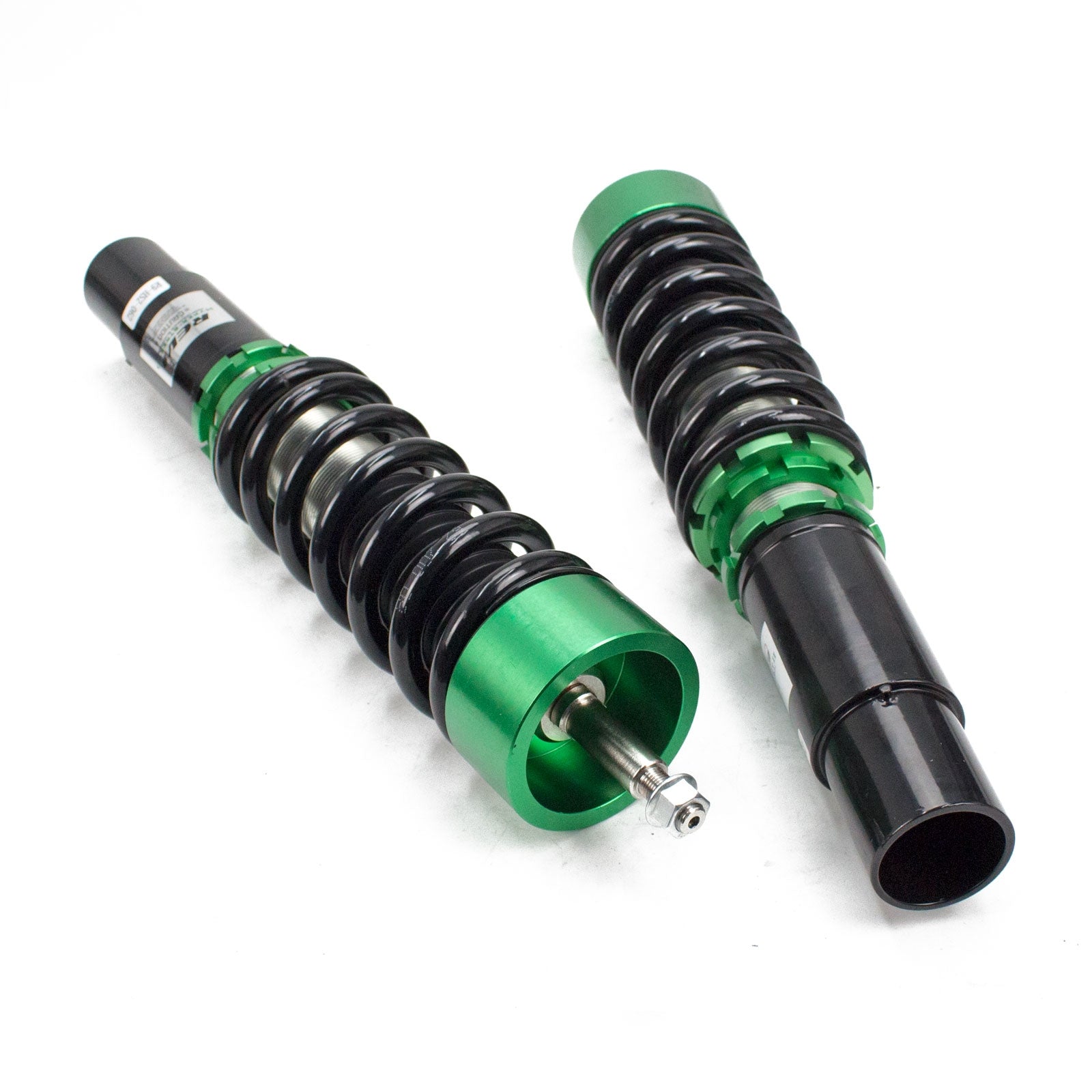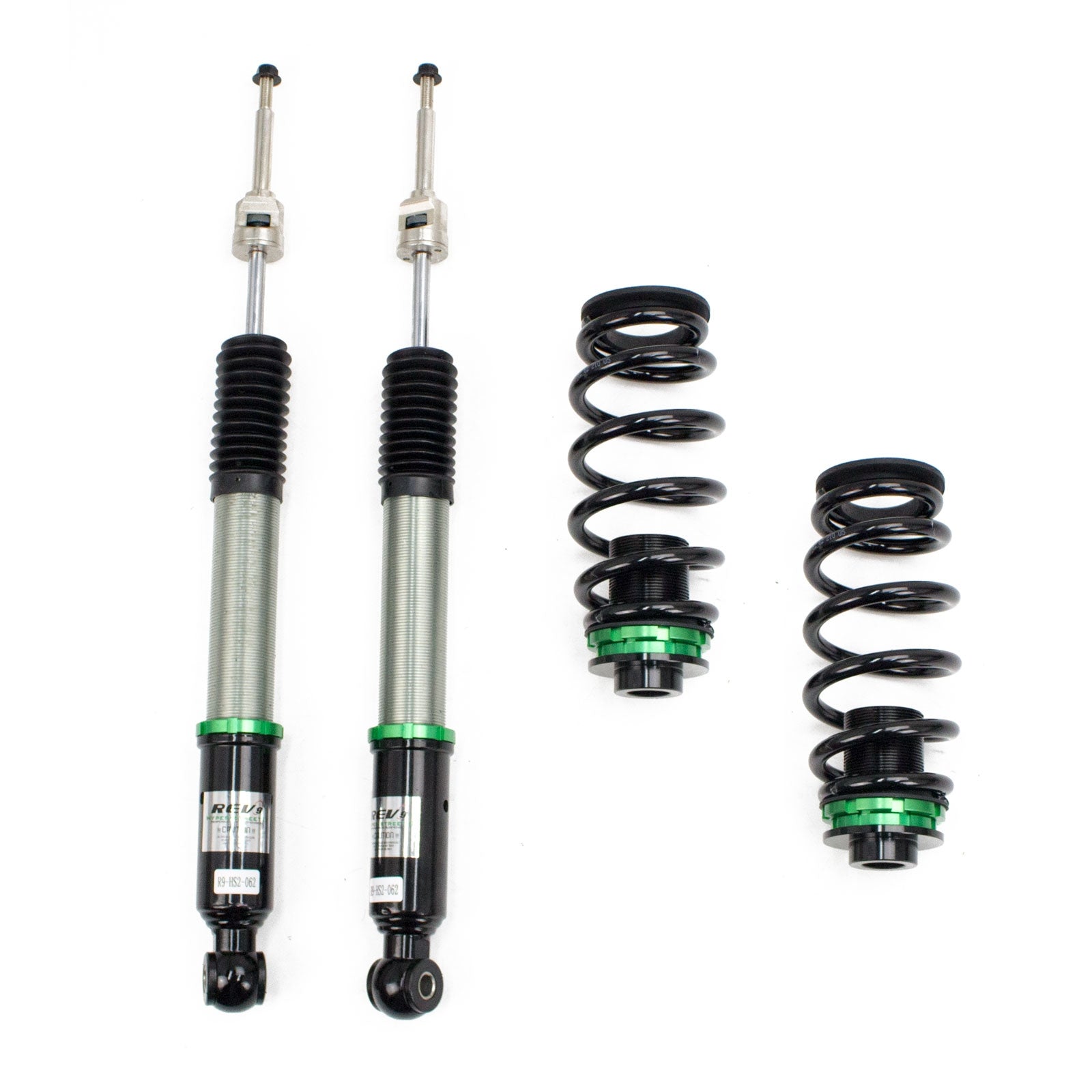 Hyper-Street II coilover suspension upgrade features mono-tube shocks with 32 clicks rebound settings and full length adjustable. Mono-tube shocks provides larger capacity for gas and oil to improve comfortable level of typical lowering vehicle. Special 32 clicks of valving allows user to fine tune rebound force settings. Independent spring tension and full length adjustable allows drop without sacrifice comfort by shorten pitch distance.