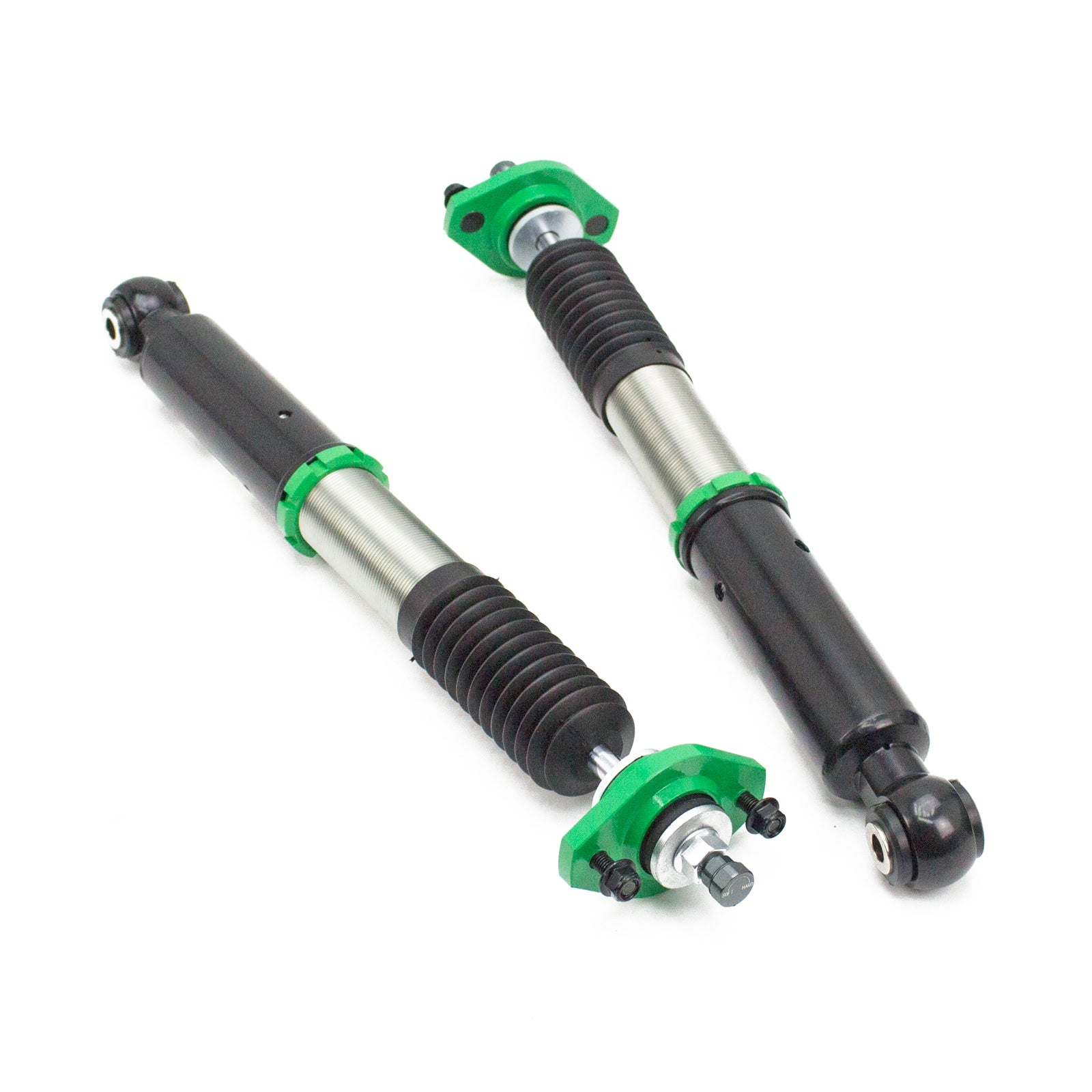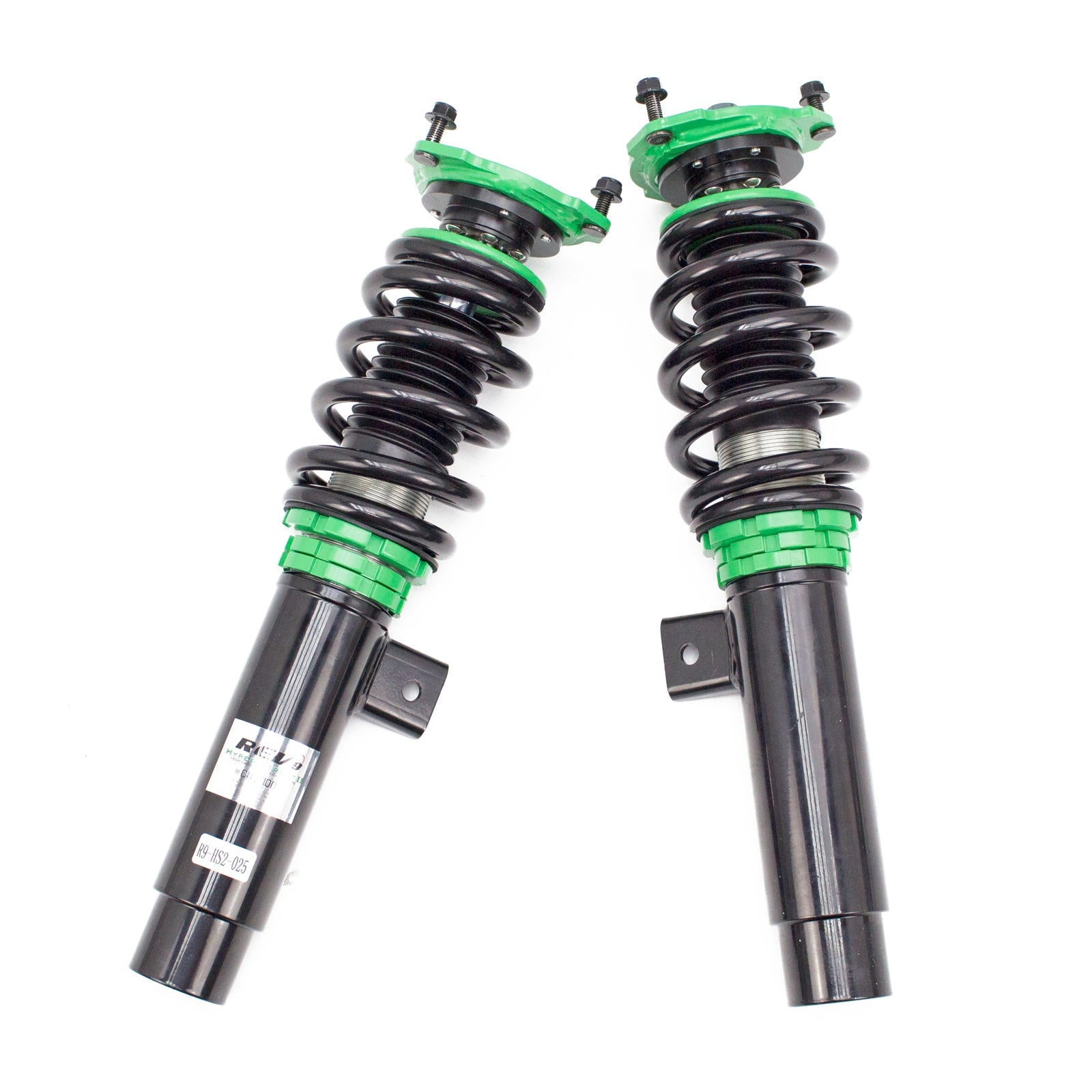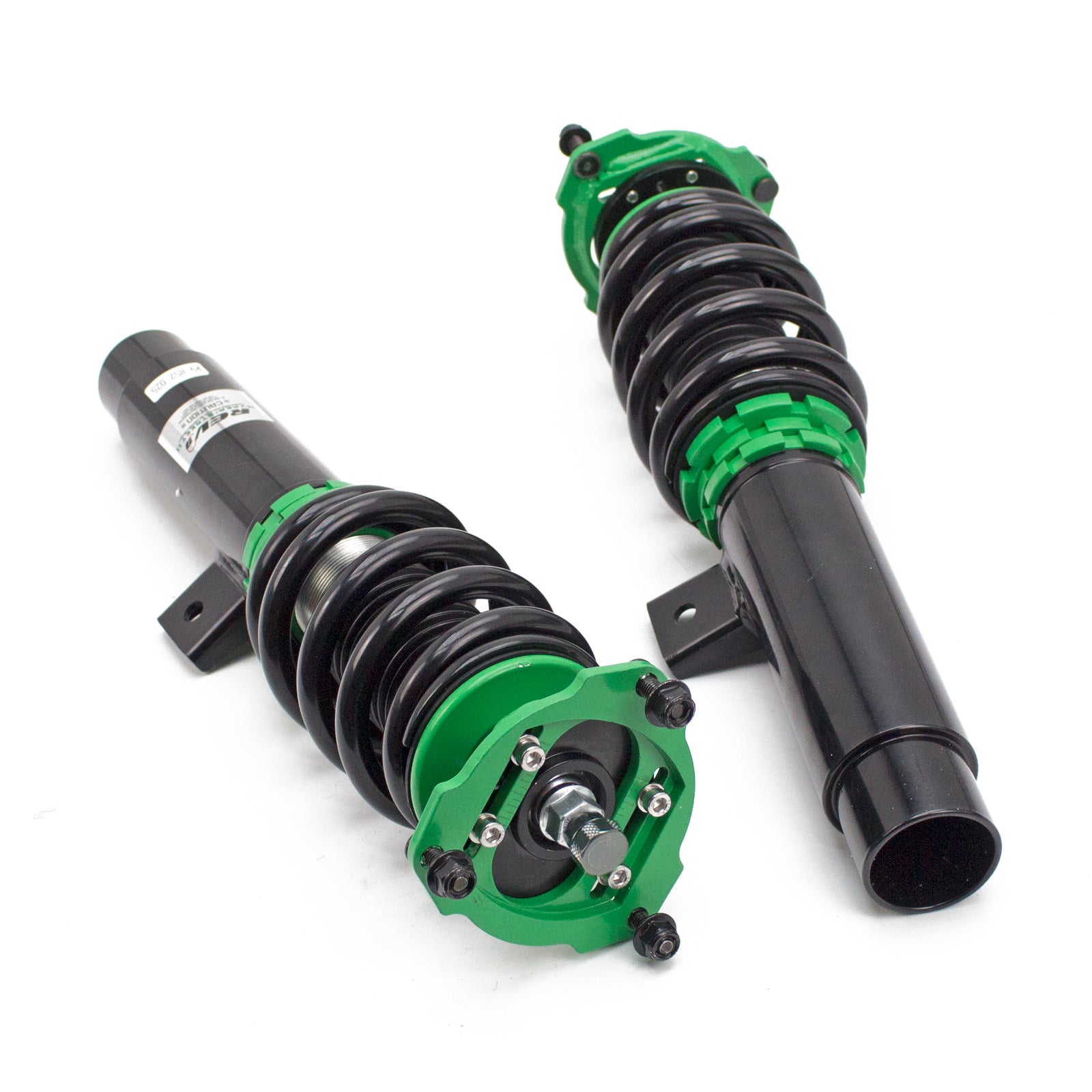 Hyper-Street II Coilover Suspension Upgrade Fits BMW 3-Series(E46) 1999-05; Coupe/Convertible 1999-06; RWD Only; DOES NOT fit M3. Hyper-Street II coilover suspension upgrade features mono-tube shocks with 32 clicks rebound settings and full length adjustable. Mono-tube shocks provides larger capacity for gas and oil to improve comfortable level of typical lowering vehicle. Special 32 clicks of valving allows user to fine tune rebound force settings. Independent spring tension and full length adjustable allows drop without sacrifice comfort by shorten pitch distance.