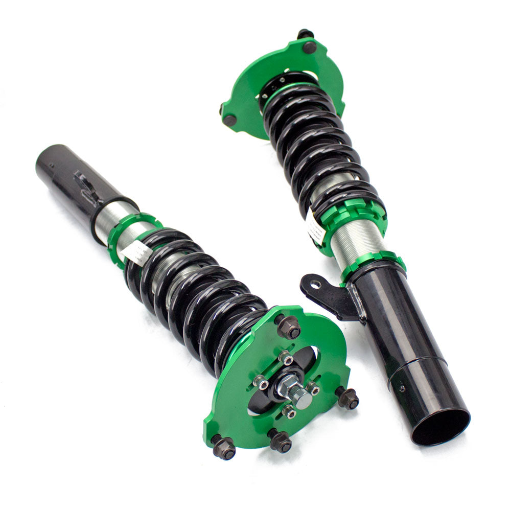 Hyper-Street II coilover suspension upgrade features mono-tube shocks with 32 clicks rebound settings and full length adjustable. Compatible With BMW 3-Series RWD (F30) 2012 2013 2014 2015 2016 2017 2018; Excludes ELECTRONIC SUSPENSIONS. Mono-tube shocks provides larger capacity for gas and oil to improve comfortable level of typical lowering vehicle. Special 32 clicks of valving allows user to fine tune rebound force settings. Independent spring tension and full length adjustable allows drop without sacrifice comfort by shorten pitch distance.