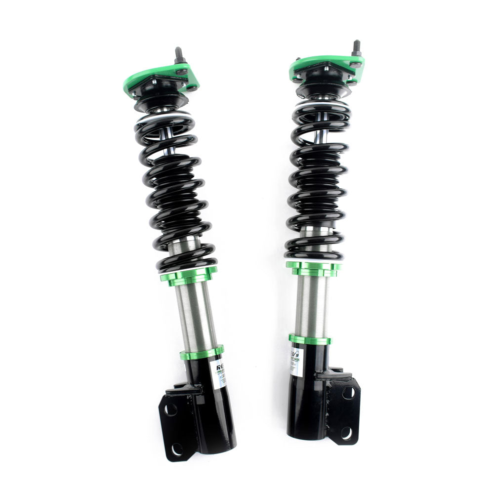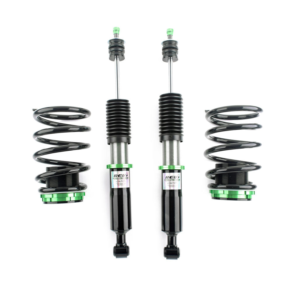 Rev9 Hyper-Street ONE Coilovers for Ford Mustang 1994-98 are designed for tuners on a budget. Engineered to lower your vehicle with the combination of proper lengthen shocks and High tensile springs to work together to provide perfect balance between comfort and performance. Hyper-Street ONE Coilovers Lowering Kit Assembly. Rebuild-able Mono-Tube shocks with 16 damping force adjustment to help quickly stabilize and keep the wheels on the road when you hit a bump. High tensile springs are made from SAE9254 steel wire to assure high quality standards and longevity to withstand performance needs. Pillow-Ball top mounts provide sharper and precise handling are utilized if applicable. With all these key features to make Rev9 Hyper-Street ONE are one of the best budget kits on the market today.